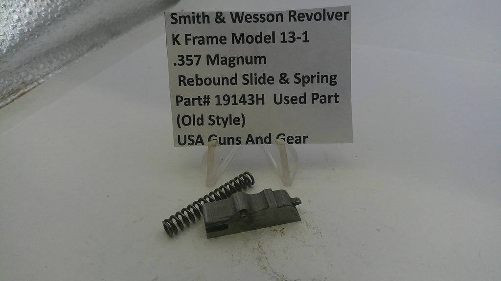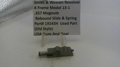 Pre-owned rebound slide and spring for the Smith & Wesson K Frame Model 13-1 .357 Magnum revolver, featuring the original old-style design. Suitable for restoring proper function in classic models.