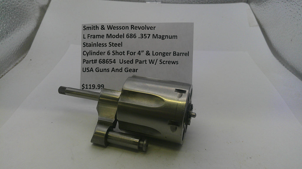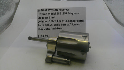 Smith & Wesson Revolver L Frame Model 686 .357 Magnum Cylinder in Stainless Steel, 6-Shot Capacity, Compatible with 4" or Longer Barrels, Pre-Owned Component