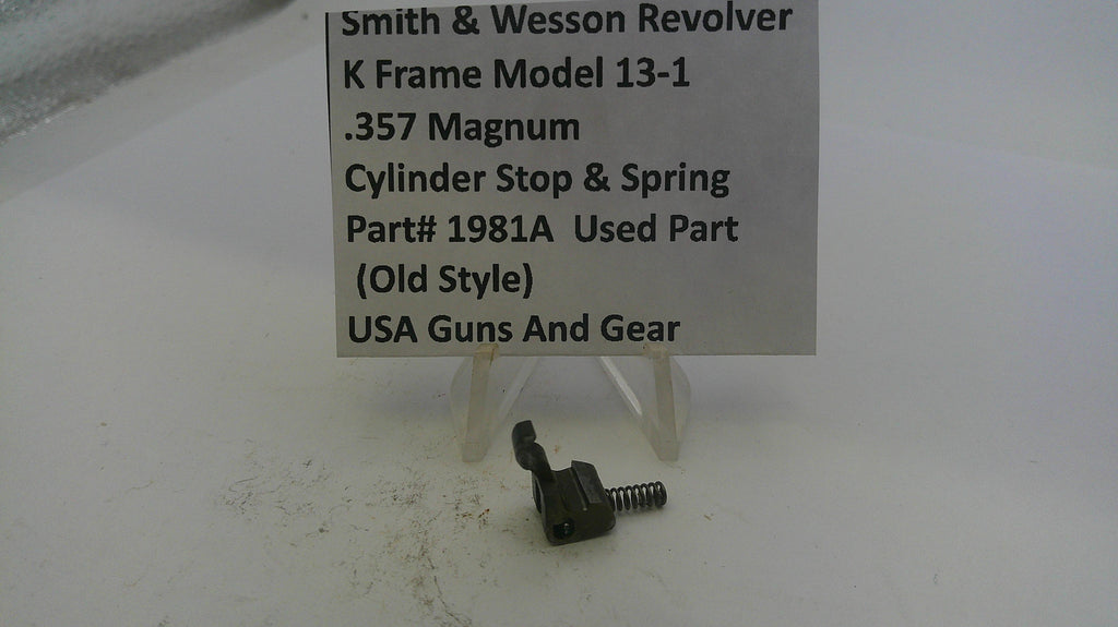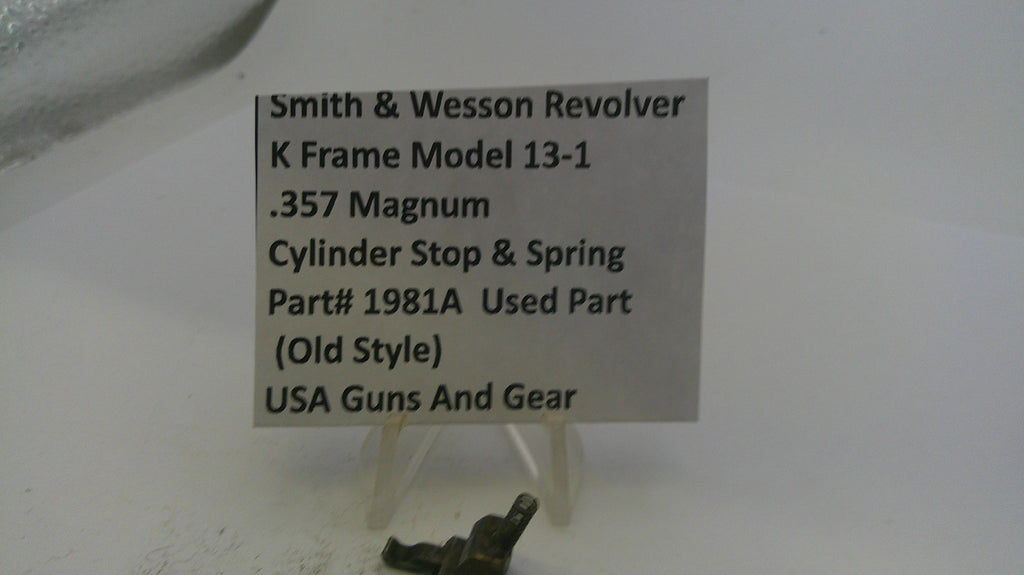 Used cylinder stop and spring assembly for the Smith & Wesson K Frame Model 13-1 .357 Magnum revolver, featuring the original old-style design. Perfect for repairs or restoring functionality to your classic firearm.