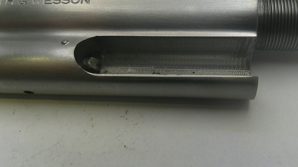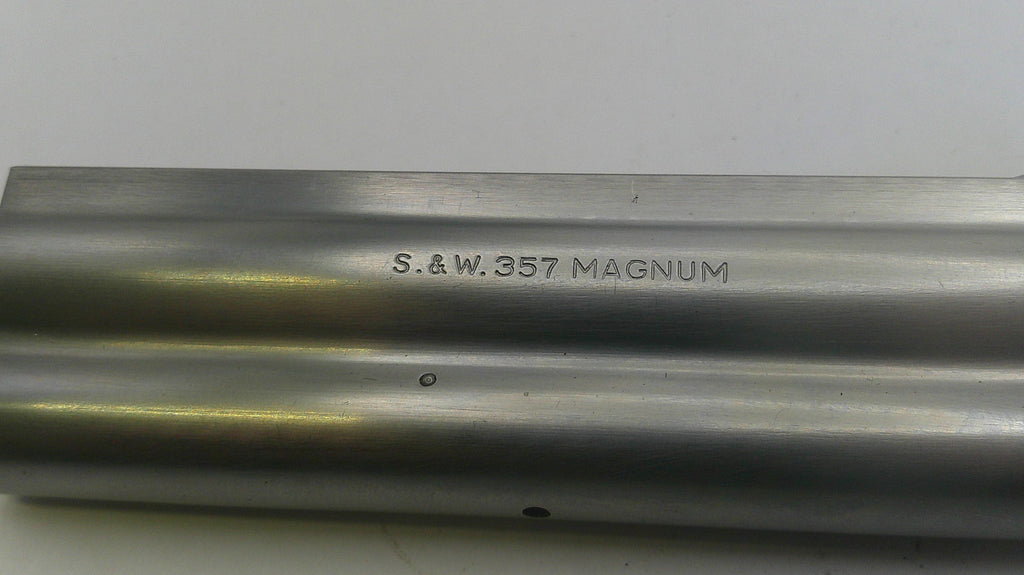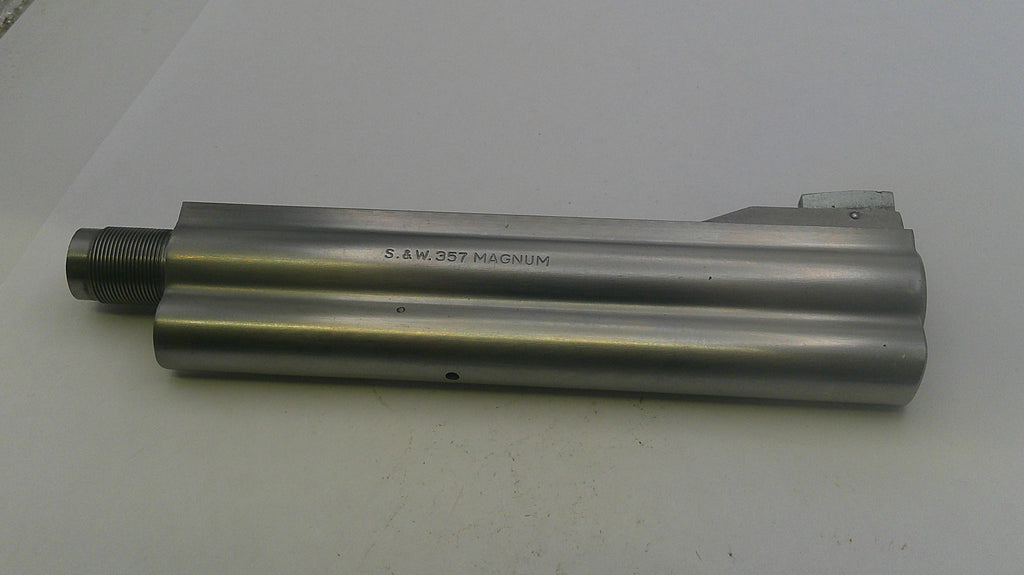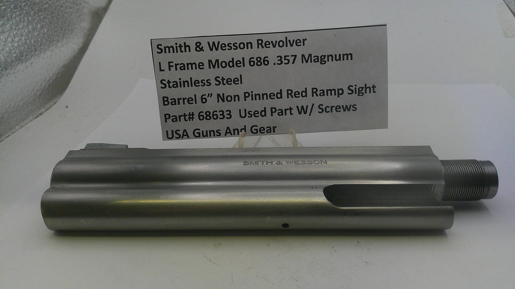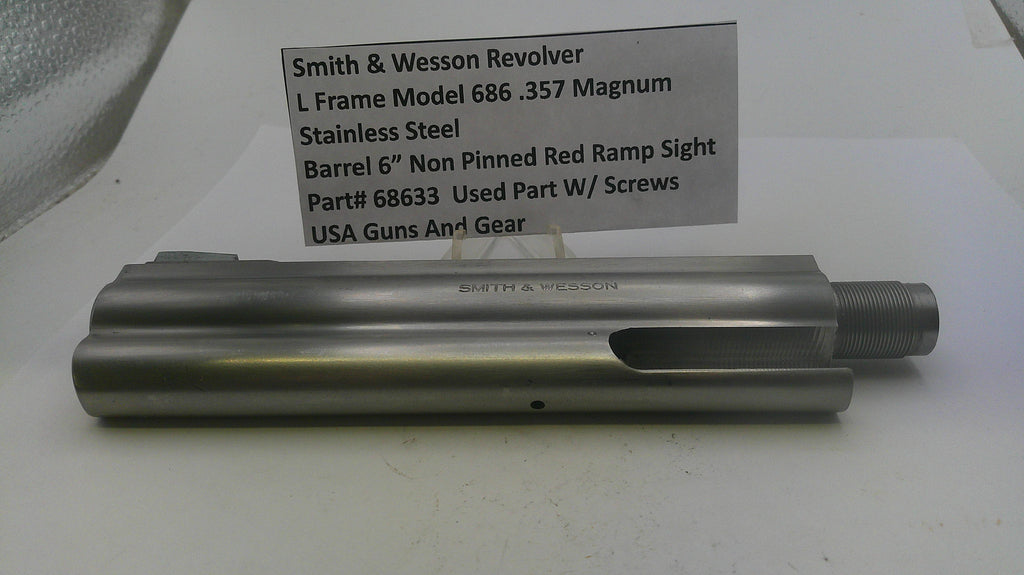 Smith & Wesson L Frame Model 686 .357 Magnum revolver barrel, 6" length, stainless steel, non-pinned with red ramp sight. This is an older style, used component designed for precision and reliable performance.