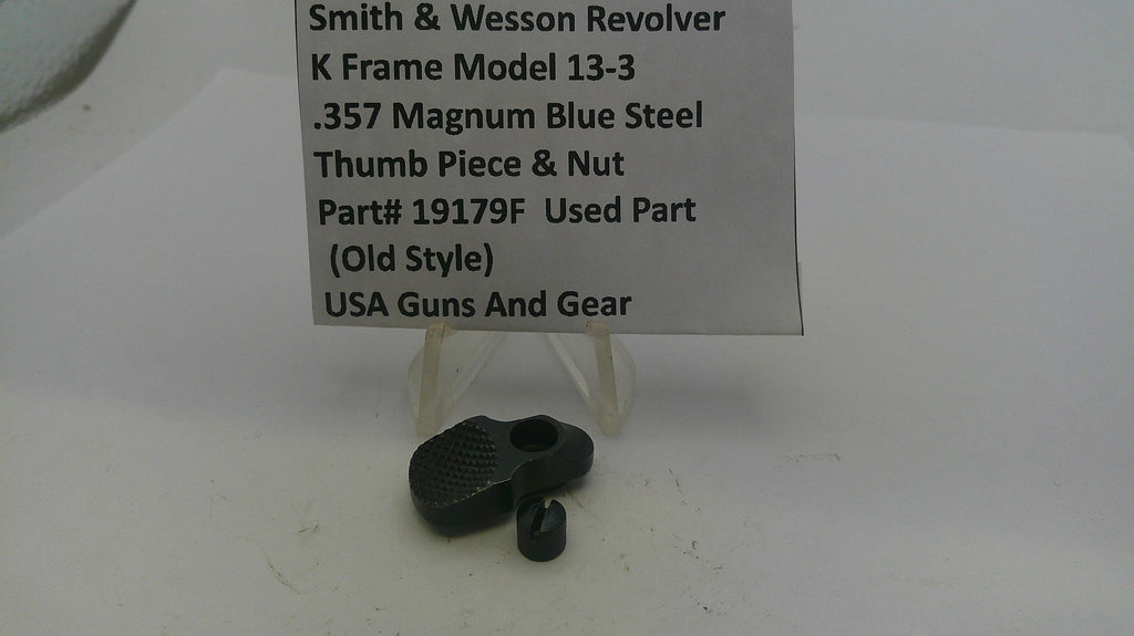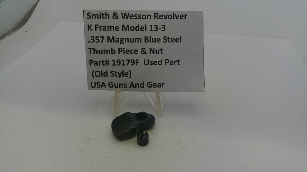 Smith & Wesson K Frame Model 13 Thumb Piece & Nut, used component for .357 Magnum revolvers, featuring the classic old-style design.