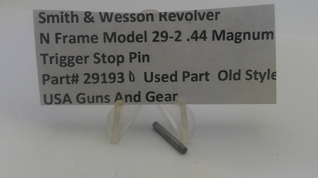 This trigger stop pin is a precision-engineered component that regulates the trigger reset cycle on Smith & Wesson's N Frame Model 57 revolver. Designed for .41 Magnum performance, it maintains the exact mechanical tolerances required for consistent trigger control and reliable operation. Sourced from original inventory, this used part restores proper trigger function for restoration projects or replacement needs. A critical element for enthusiasts dedicated to preserving the authentic performance characteristics of this powerful magnum revolver.