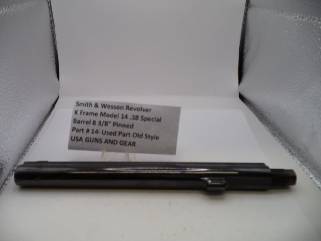 Smith & Wesson K Frame Model 14 barrel, 8 3/8" in length, .38 Special caliber, featuring pinned blue steel construction. This used, classic style component is designed for precise fitting and reliable performance. 14C