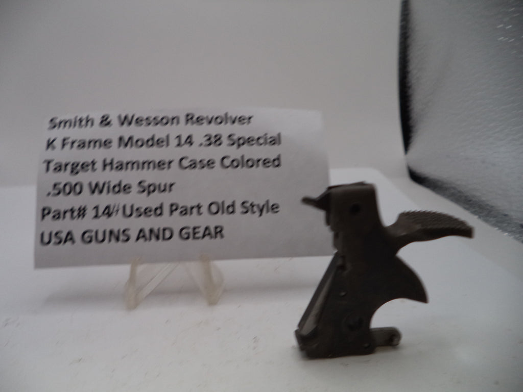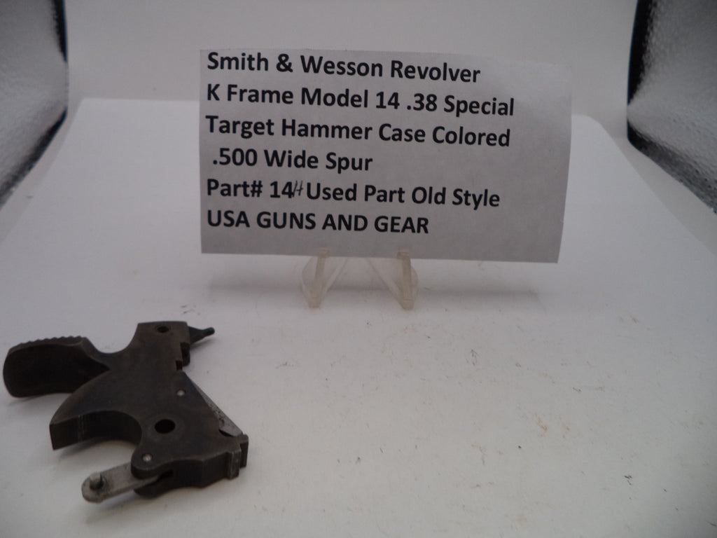 Smith & Wesson K Frame Model 14 target hammer for .38 Special, featuring a .500" wide spur and case-colored finish. This used classic-style part is designed for precision and authentic restoration. 14H