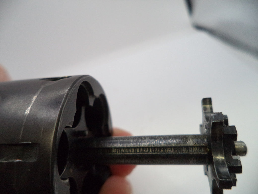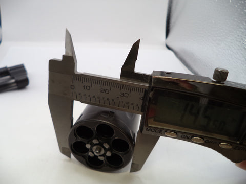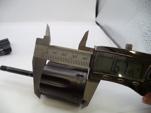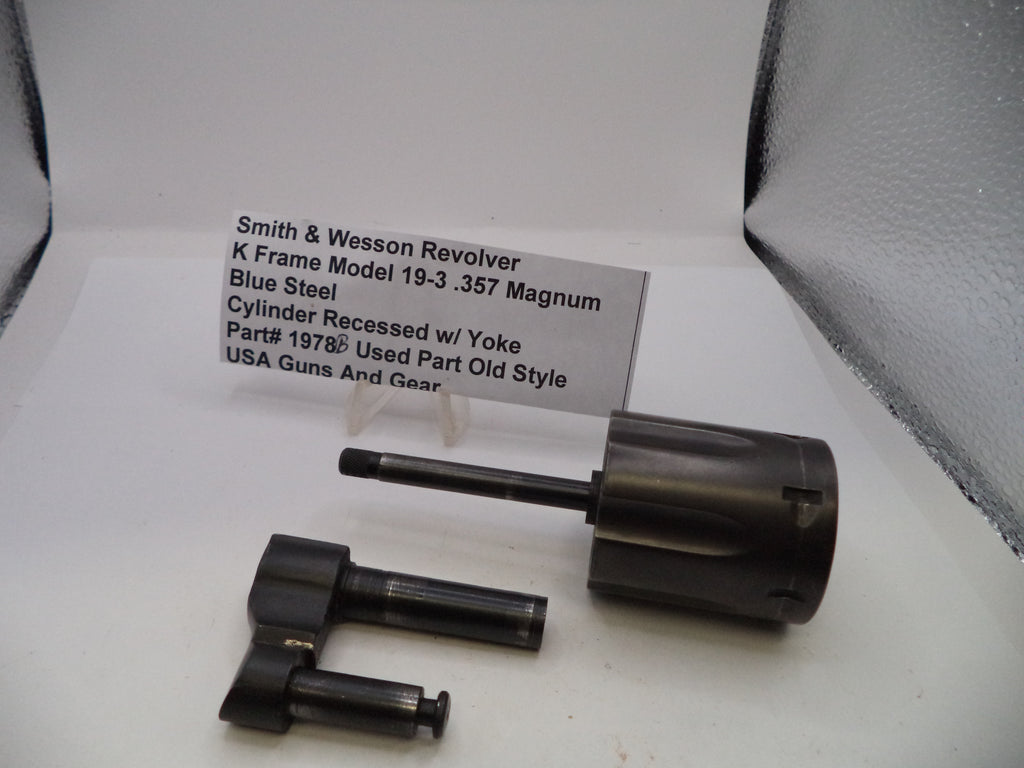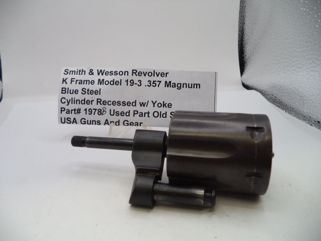 Smith & Wesson K Frame Model 19-3 .357 Magnum recessed cylinder with yoke, crafted from blue steel. This vintage used component measures 1.67" in length and 1.45" in diameter, suitable for authentic restoration projects. Part# 1978B