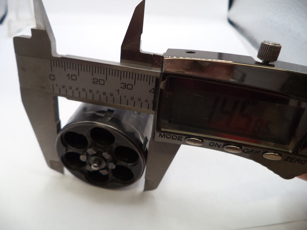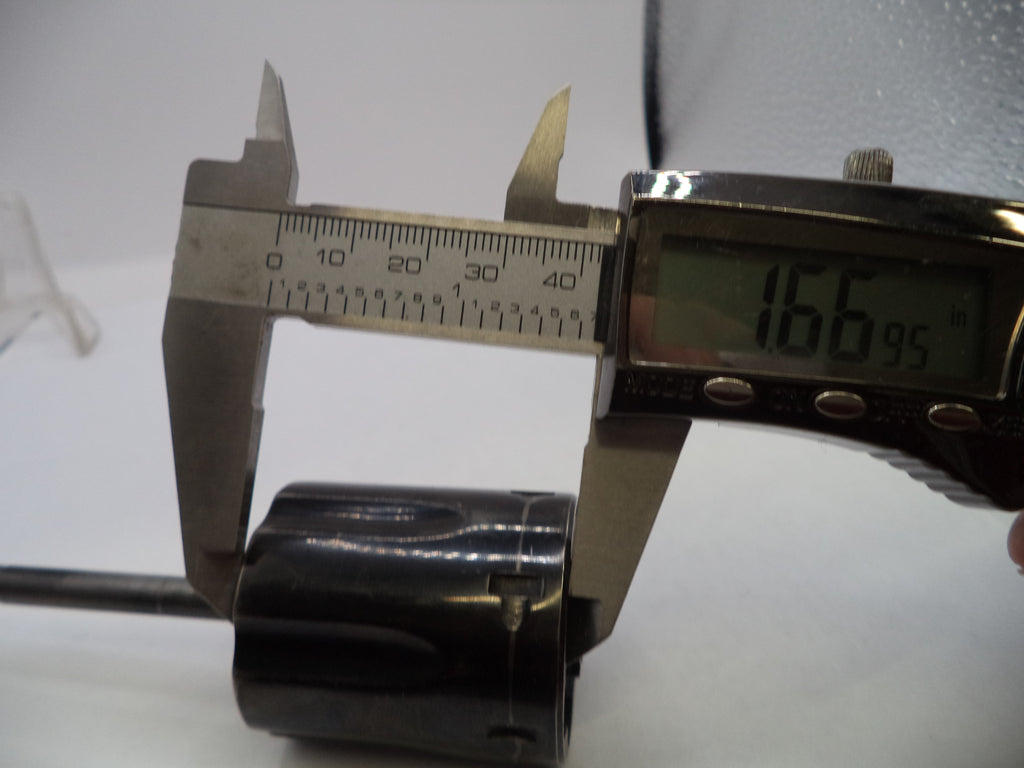 Original Smith & Wesson K-frame Model 19 cylinder assembly in .357 Magnum with recessed design. Fires both .357 Magnum and .38 Special ammunition. Blue steel finish with precision yoke. Vintage 1978-era component offering authentic specifications and reliable performance for restoration projects or replacement needs. Cylinder Length 1.66", Diameter 1.45"