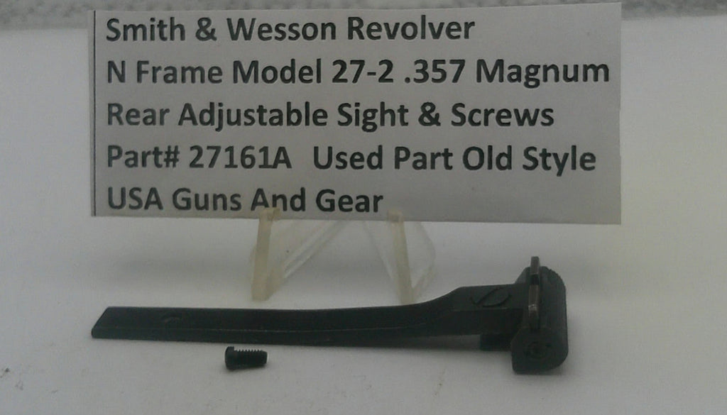 This is an authentic Smith & Wesson 2.09" rear adjustable sight for N Frame Model 27 revolvers chambered in .357 Magnum. OEM factory part number 27161A is an old-style design in used condition, sourced from classic S&W inventory.