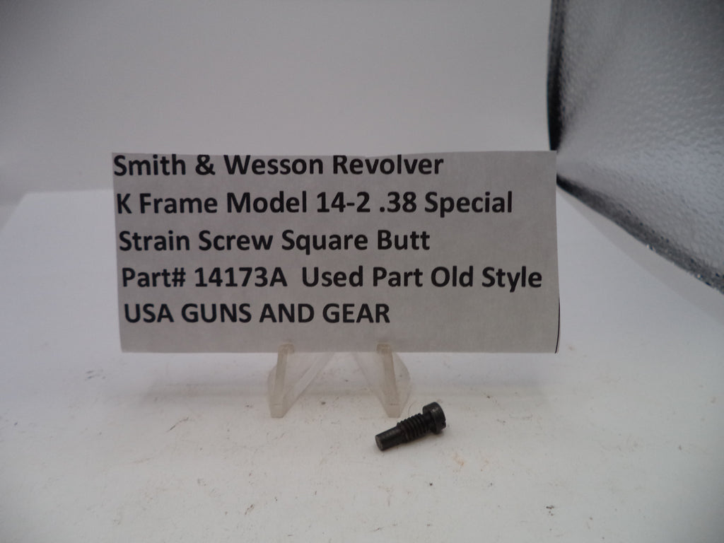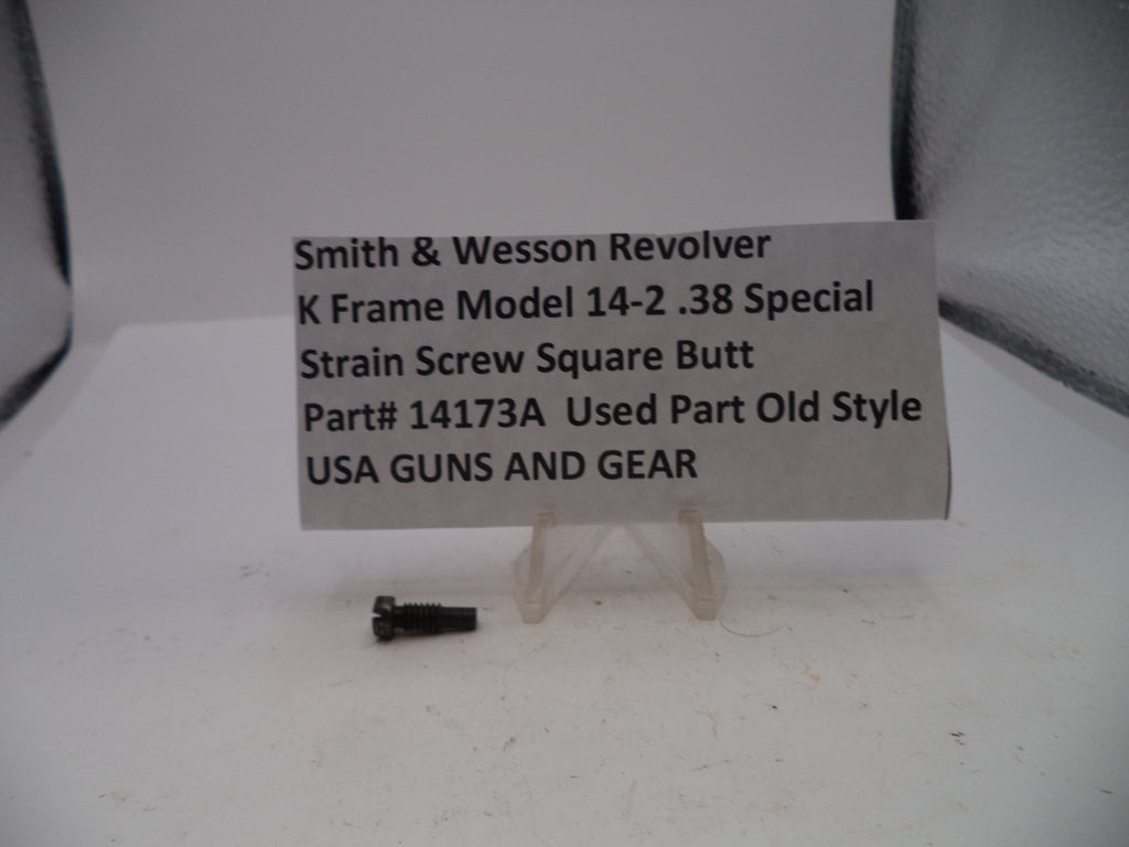 Authentic used strain screw for the Smith & Wesson K Frame Model 14-2 .38 Special with square butt, crafted from blue steel in the classic style.  14173A