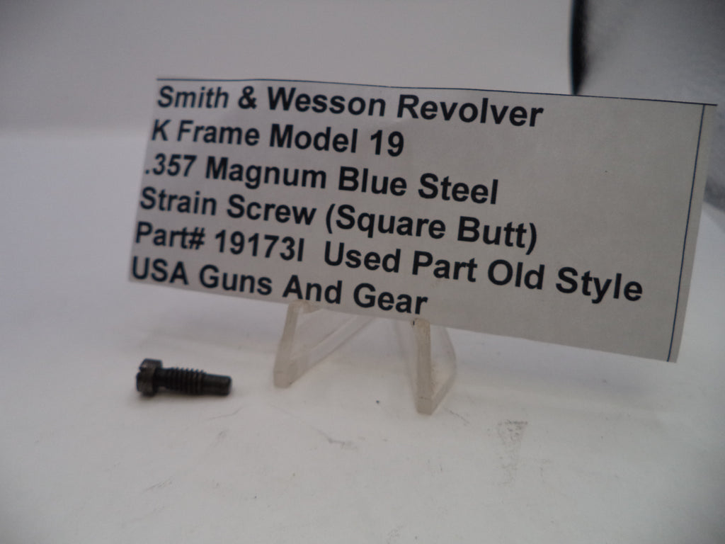 Authentic vintage strain screw in blue steel for the Smith & Wesson K Model 19 .357 Magnum with a square butt, crafted for discerning firearm collectors and professionals.