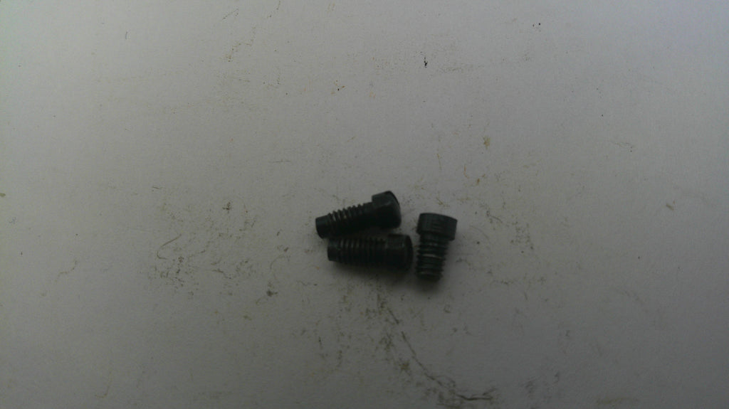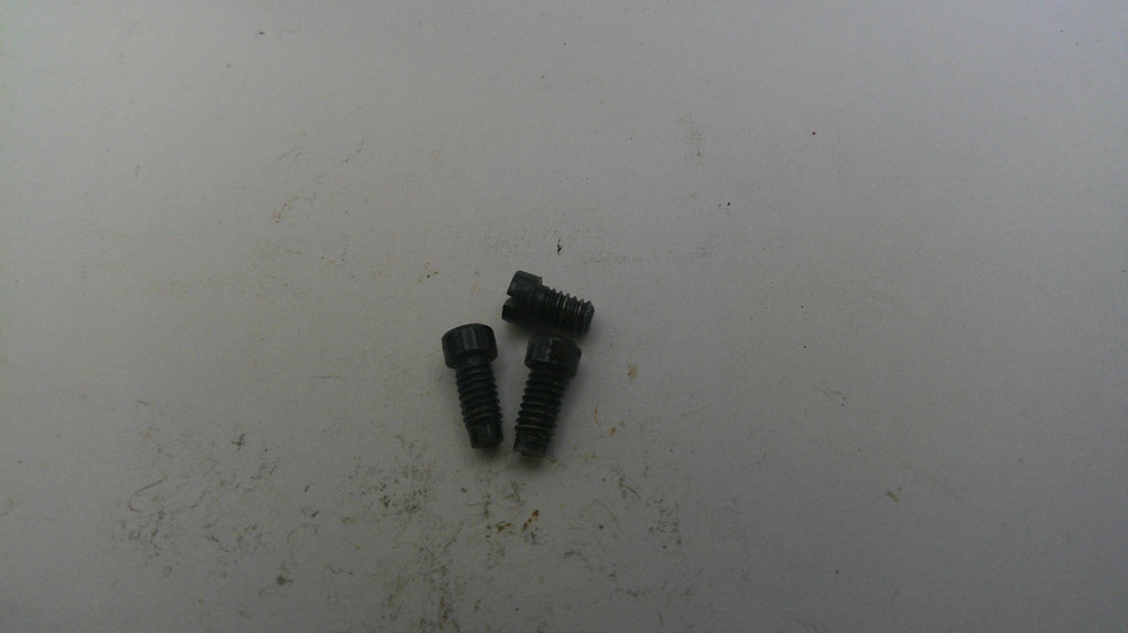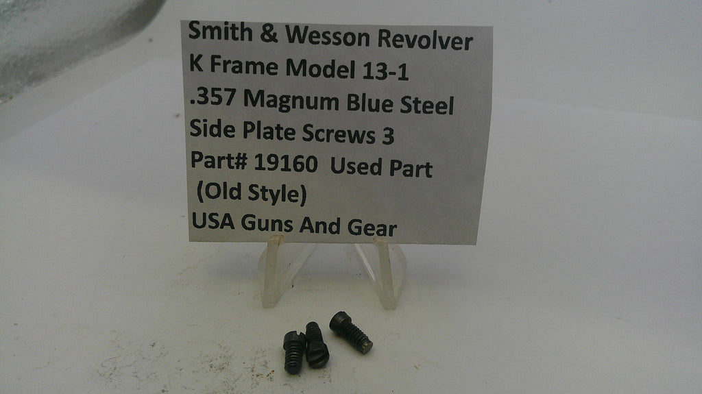 Three vintage blue steel side plate screws for the Smith & Wesson K Frame Model 13-1 (4 Screw) Combat Magnum .357 Magnum revolver. These used components are essential for authentic restoration or repairs of the classic firearm.