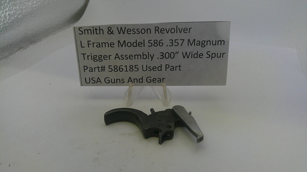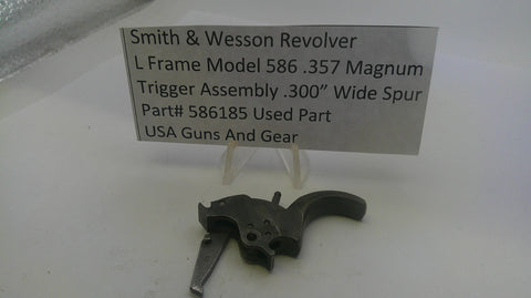 Genuine Smith & Wesson L-frame trigger assembly designed for the Model 586 revolver chambered in .357 Magnum. This .300" wide spur component is a factory original part sourced from a used firearm, making it an economical choice for trigger replacement or repair work. Ideal for gunsmiths and experienced shooters seeking authentic OEM components to restore or maintain their classic S&W revolvers.
