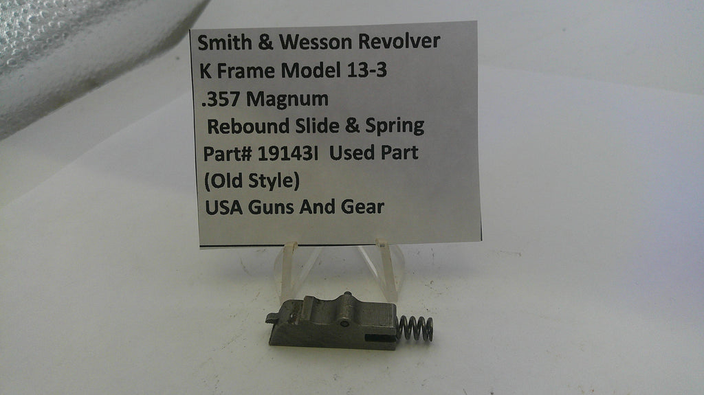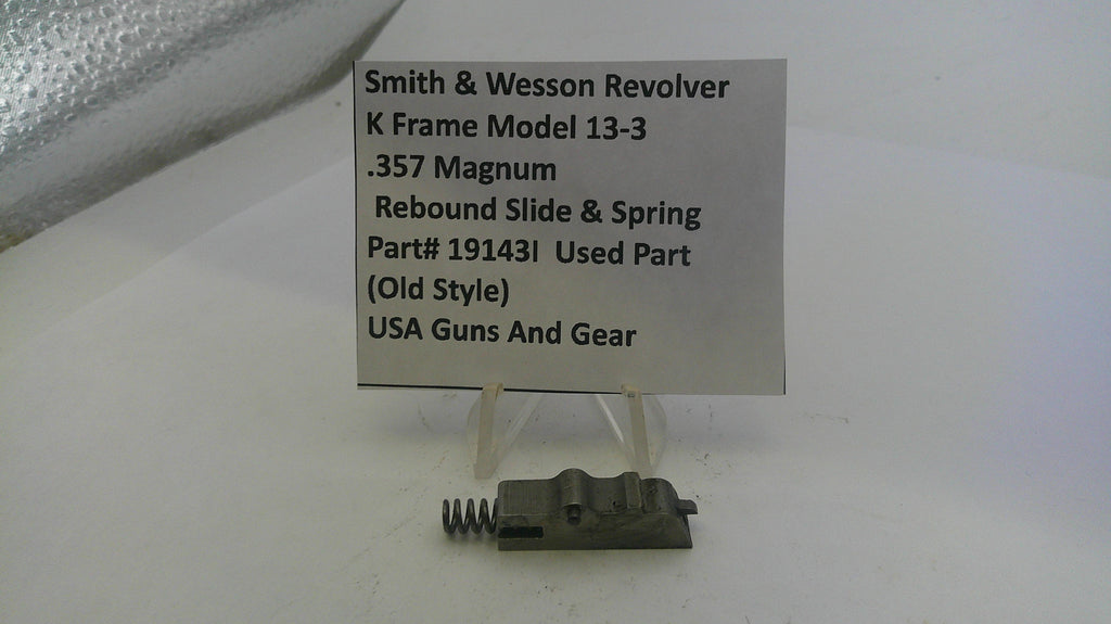 Pre-owned rebound slide and spring for the Smith & Wesson K Frame Model 13 .357 Magnum revolver, featuring the original old-style design. Suitable for restoring proper function in classic models.