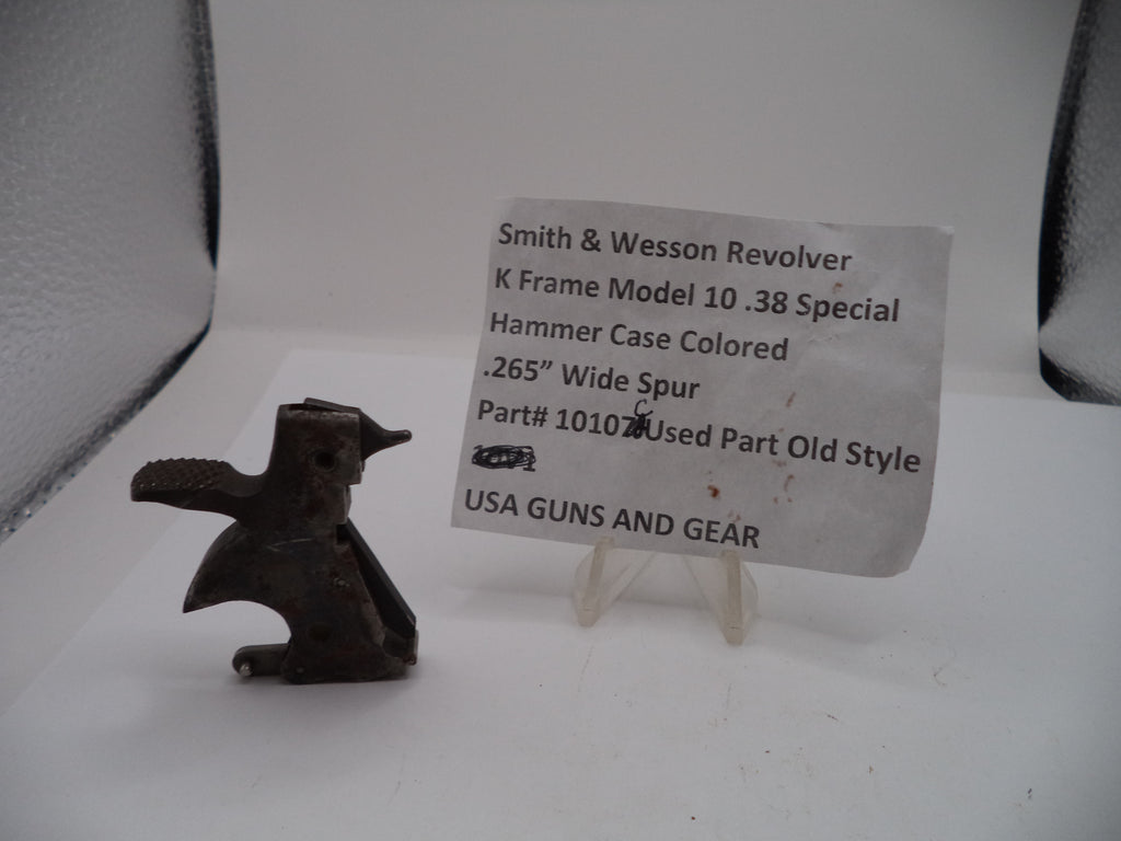 This is a used hammer for the Smith & Wesson K Frame Model 10 revolver chambered in .38 Special. It features a .265" wide spur and is finished with the classic case-colored, old-style design. 10107C