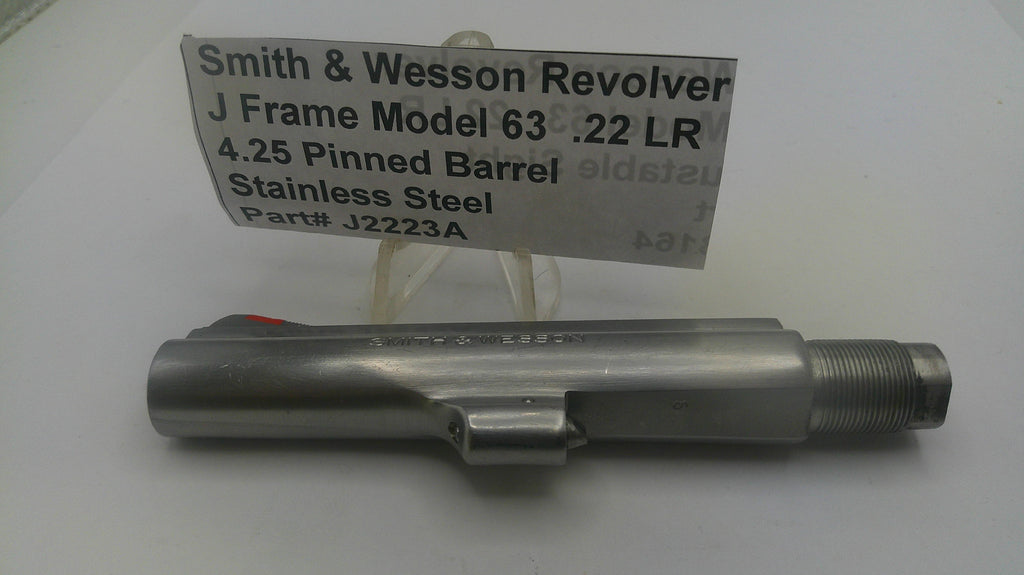 This genuine Smith & Wesson pinned barrel is designed specifically for the J Frame Model 63 revolver in .22 LR caliber. Crafted from durable stainless steel with a red ramp front sight, this 4.25" barrel offers reliable performance for your restoration or repair project.