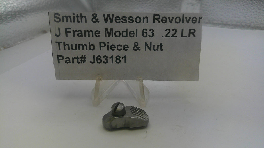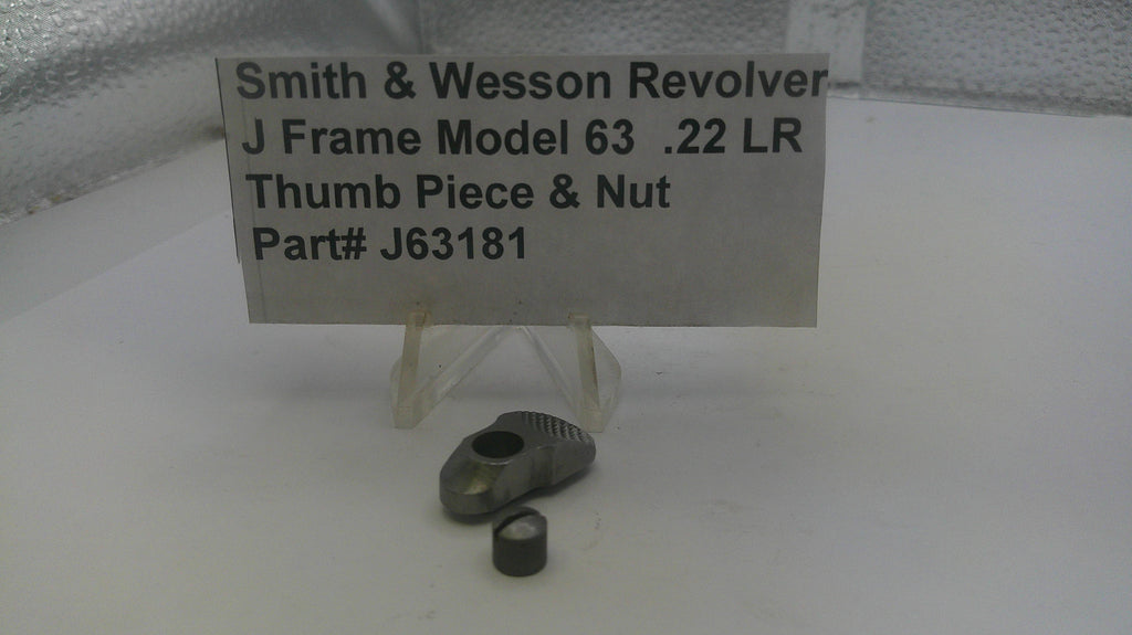 Authentic OEM thumb piece and retaining nut assembly designed specifically for Smith & Wesson Model 63 revolvers chambered in .22 LR. This critical component ensures secure cylinder release and rotation, maintaining the precision and reliability you expect from Smith & Wesson firearms.