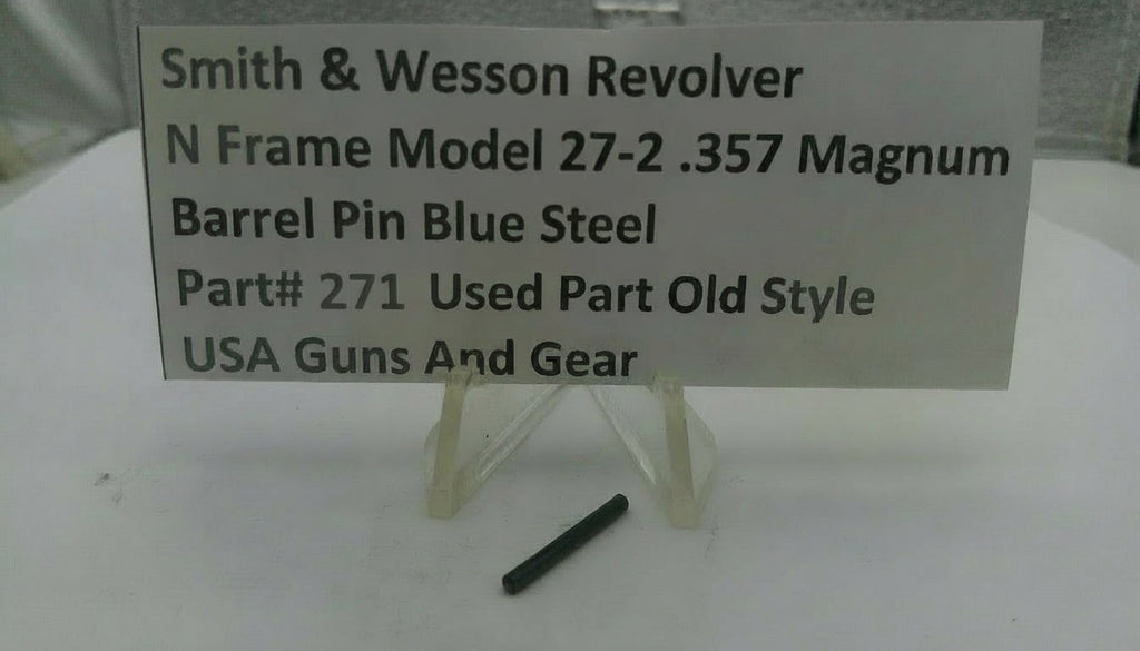 This is an authentic Smith & Wesson barrel pin for N Frame Model 27 and Model 27-2 revolvers chambered in .357 Magnum. OEM factory part number 271 is a vintage-specification component with blue steel finish, sourced from original production runs.